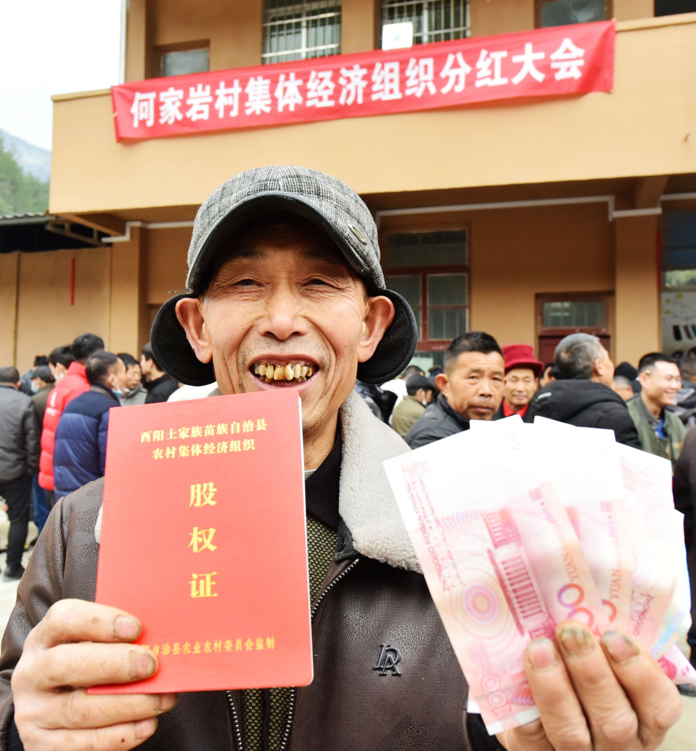 村民领取分红过大年