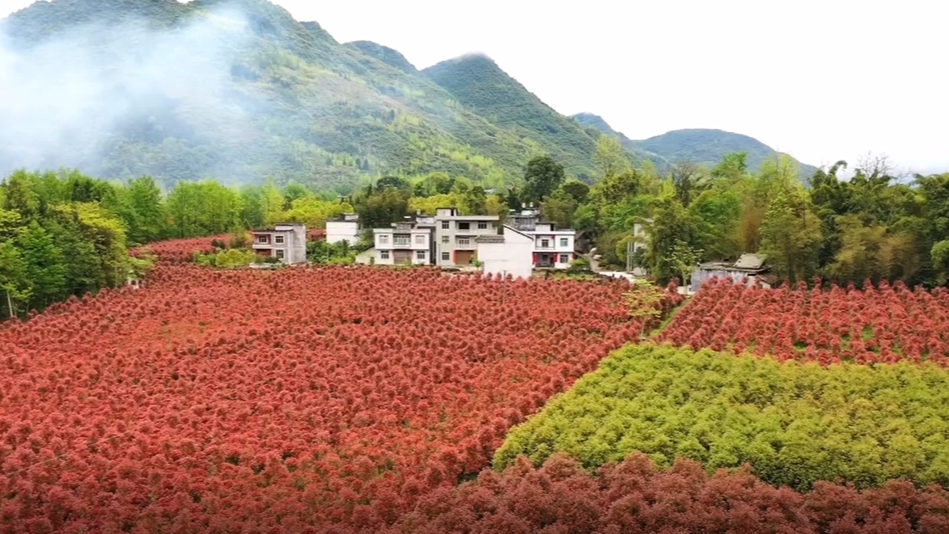 重庆酉阳:红叶石楠抽新叶 如火似焰染红春天
